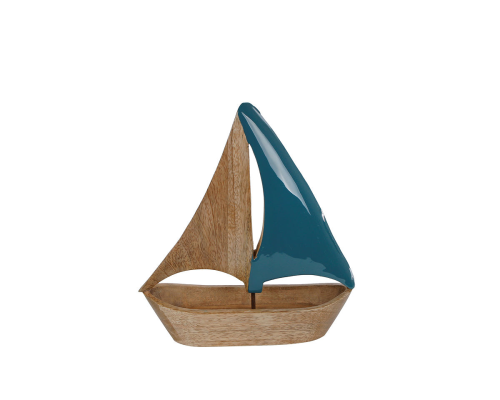 Sculptuur boot Sail S blauw/naturel mango 25x23x3cm
