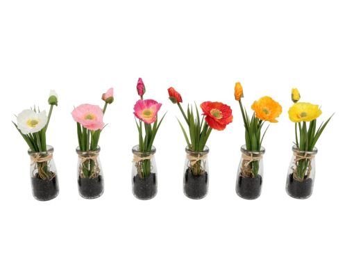 Countryfield Kunstbloem Papaver in vaas assorti kleur