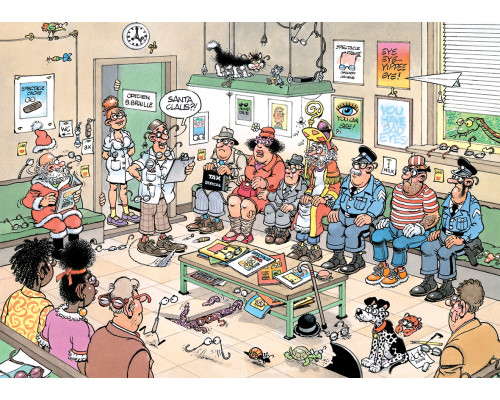 De wachtkamer bij de opticien zit vol met de Jan van Haasteren-familie. Maar kan deze opticien iedereen aan de juiste blik helpen?_x00D_