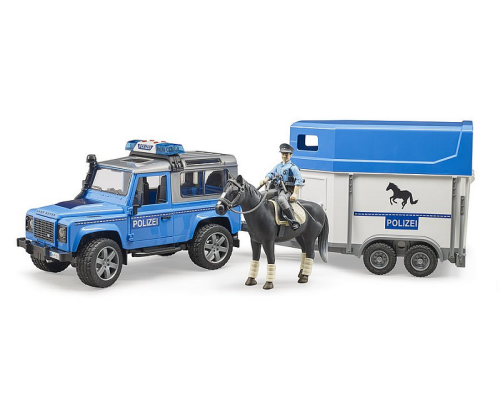 Bruder Land Rover Defender Politiewagen met paardentrailer