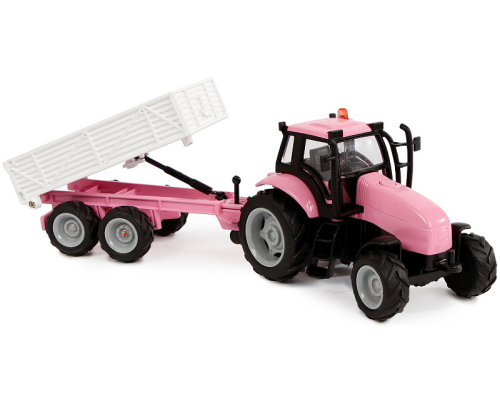 Kids Globe tractor met aanhanger 25cm met L/G roze
