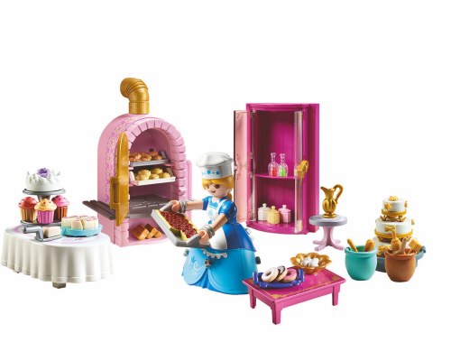 De prinses bereidt fijne delicatessen in de bakkerij. Met spuit en veel accessoires om taarten te maken.