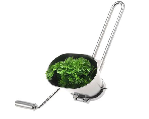 • scherpe roestvrijstalen tanden scheuren de kruiden in