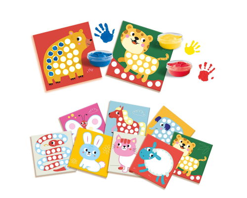 Deze set bevat drie kleuren vingerverf en tien kleurplaten met dieren die jij kunt inkleuren met je vingers. Welk dier ga jij inkleuren? Ga je voor het schattige konijntje of de stoere beer? De witte vakjes op de kleurplaten kun je geheel naar eigen wens