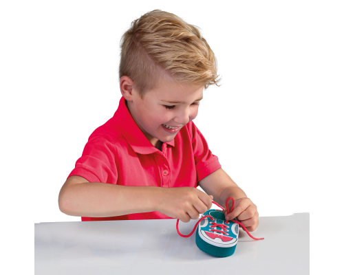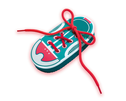 Veters leren strikken wordt met dit schoentje heel gemakkelijk. De instructies op de verpakking helpen jou om het te leren. Oefenen, oefenen, oefenen en voor je het weet heb je het onder de knie!