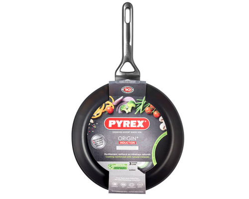 Pyrex Origin+ , een reeks inductie pannen voor dagelijks heerlijk en gezond koken! De pannen bestaan uit een sterke, duurzame en 100% gezonde antiaanbaklaag. Deze exclusieve coating bestaat uit 3 sterke lagen, waaronder een versterkte middenlaag met natuu