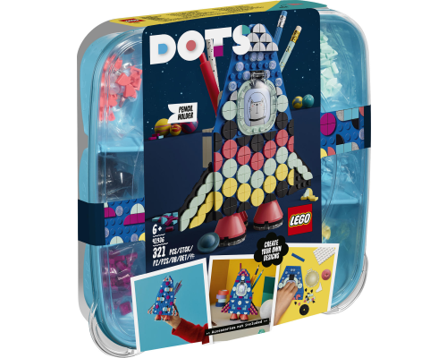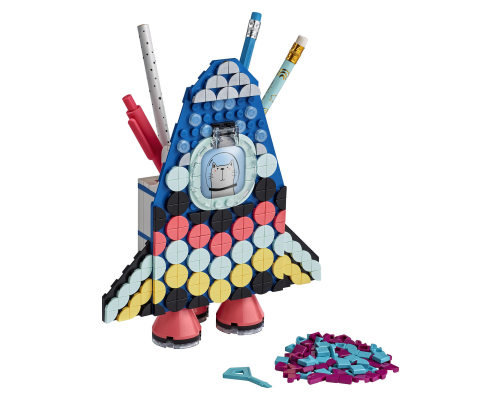 Beleef een heleboel creatief plezier met dit handige DOTS Potloodbakje! Zet de panelen van de multifunctionele houder in de vorm van een raket in elkaar en versier ze. Plaats hem daarna op je bureau of in je kamer. Schuif een foto of tekening in de openin