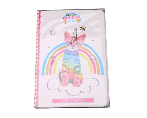 "Rainbow Pets ""stickey notes"" boekje met 30 plakblaadjes met 7 verschillende regenboog dieren. 18 stuks in display.