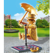 Deze artiest houdt ervan om op straat op te treden. Met zijn gouden kostuum trekt hij de aandacht van alle voorbijgangers. Hij staat heel stil en beweegt niet totdat hij plotseling met zijn gouden