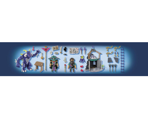 In deze griezelige demonenplaats van Playmobil woont Umbrathor! Met behulp van zijn magische poort, roept Umbrathor griezelige demonen op. Zijn doel is om problemen te veroorzaken in Violet Vale en de macht te grijpen. Met behulp van de touwladder klimt d