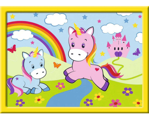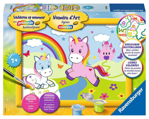 Schilderen op nummer van Ravensburger - iedereen kan schilderen! Dankzij de gekleurde buitenlijnen kunnen kinderen de afbeelding van eenhoorn en de benodigde kleuren sneller herkennen. Zo is het kinderlijk eenvoudig de kunstenaar in jezelf wakker te maken