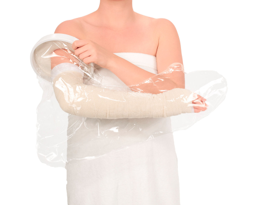 : Douchehoezen beschermen uw gips of verband tijdens het douchen. De elastische sluiting zorgt ervoor dat er geen water in de
