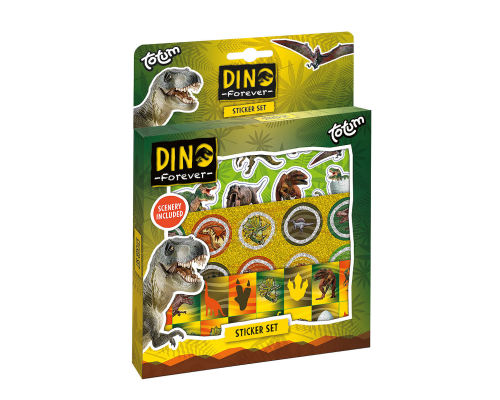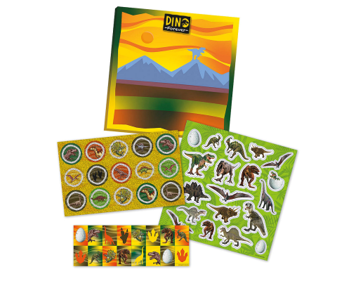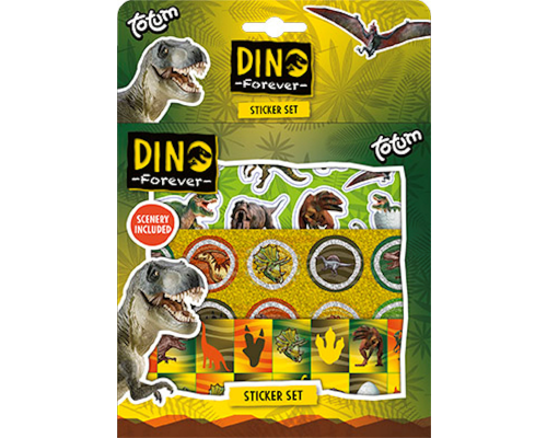 Dino forever stickerset met 3 vellen stickers en speelachtergrond