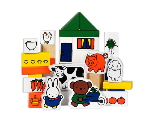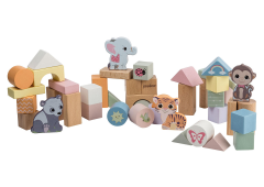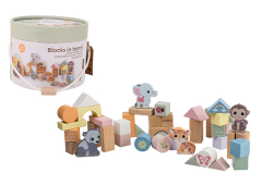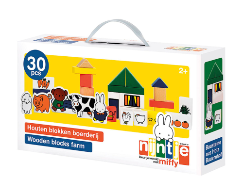 Set van 30 houten blokken/figuren in boerderij thema. In handig opbergkoffertje