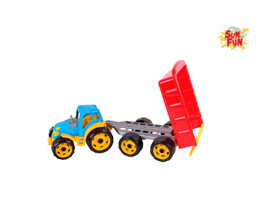 Sun Fun tractor met aanhanger 52,5x19x16,5cm blauw rood