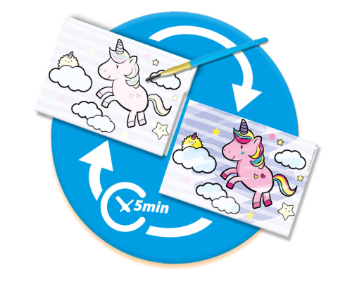 Magie met water en verven zonder rommel! Het is mogelijk om deze unieke set van SES te gebruiken. Verf de kaart met een natte borstel en zie de kleurenfoto tot leven komen. De borstel is veilig in gebruik omdat de haren niet kunnen uitvallen. Herbruikbaar