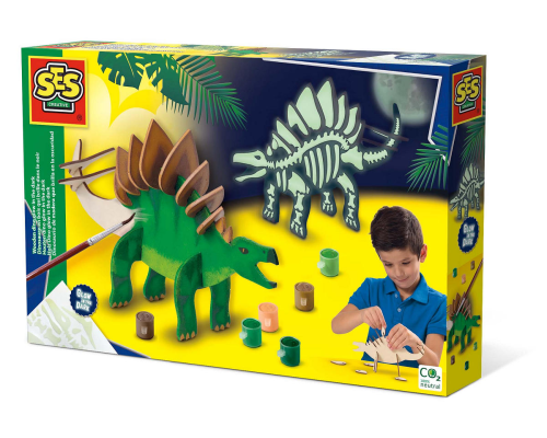 Cool, met deze knutselset kun jij je eigen dino maken! Zet eerst de houten dino in elkaar. Welke kleur geef jij jouw dino? Met de bijgeleverde zes kleuren verf bepaal jij dat zelf! De dino wordt nog gaver met de bijgeleverde glow in the dark stickers. Zo