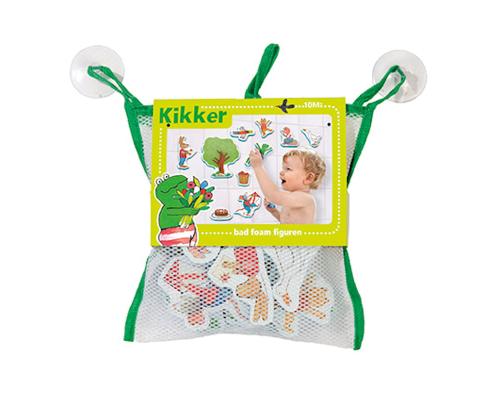 Set van 8 Kikker badfiguren, verpakt in een opbergnetje met 2 zuignappen