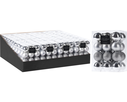 Kerstbal Onbreekbaar 3.00cm 24 stuks - Zilver