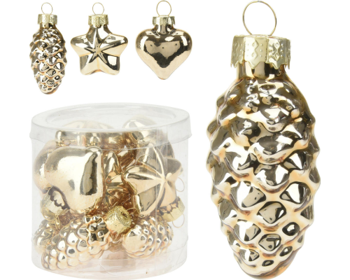 Kerstbal glas figuur 12 stuks assorti - Goud