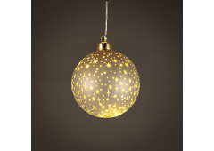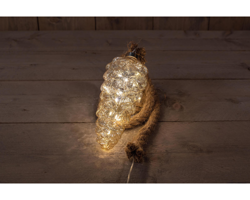 Denneappel glas goud 20cm aan 60cm touw 15 LEDS warmwit