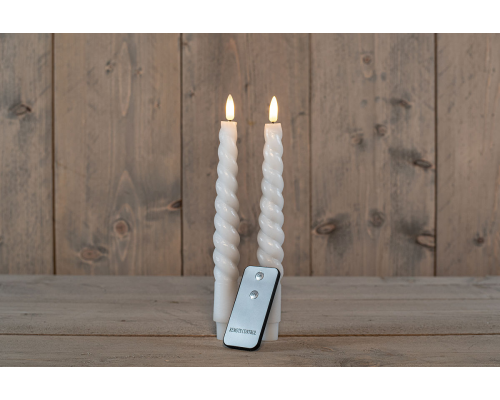 LED Kaars Swirl diner incl. afstandsbedieing - 23cm - Wit