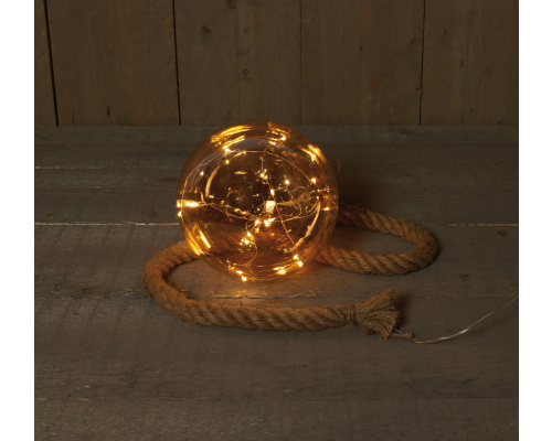 Bal glas goud 18cm aan 1 meter touw 15 LEDS warmwit