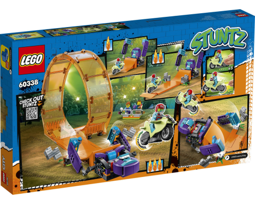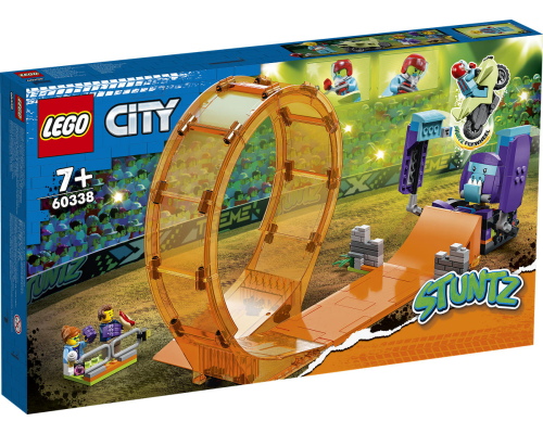 Activeer je vliegwielmotor en rijd naar de LEGO City Chimpansee stuntlooping. Stap samen met de onbevreesde LEGO City Stuntz coureur op de coole, gevleugelde motor. Rijd op topsnelheid op de looping af, tart de zwaartekracht en vlieg over de schans! Lukt