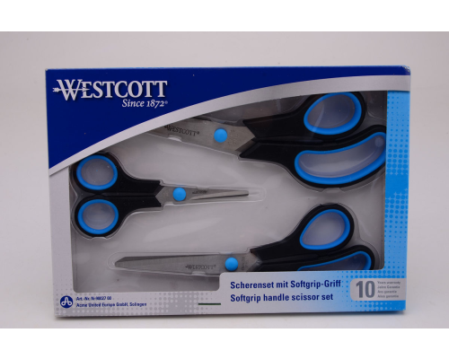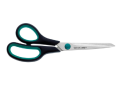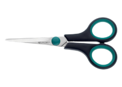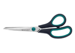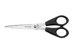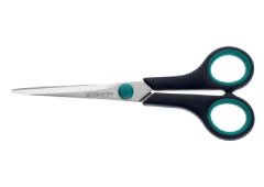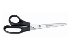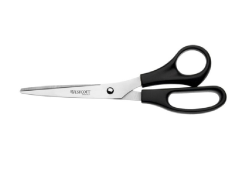 Kantoorschaar, 210 mm, Buro, met roestvrij stalen bladen en zwarte kunststof handgreep. Garantie: 5 jaar. Geleverd op blisterkaart met Euroloch.