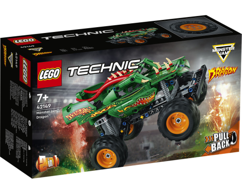 Denk je dat je opgewassen bent tegen Monster Jam? Het is tijd om je vaardigheden op de proef te stellen met de LEGO Technic Monster Jam Dragon set. Bouw de truck met zijn scherpe punten, hoorns en vlammende details. Trek hem vervolgens naar achteren en ki