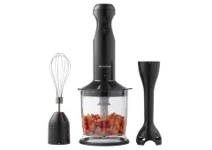 Met de Tomado TSB3501B staafmixerset mix, klop, hak, snijd en pureer je alle ingrediënten in een handomdraai. Deze staafmixerset is voorzien van een staafmixer, garde en een hakmolen met een inhoud van 500 ml. Het mes van zowel de staafmixervoet als de ha