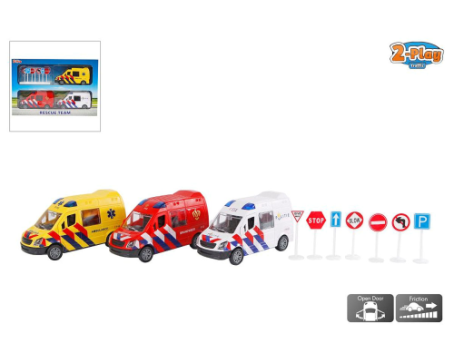 2-Play 112 voertuigen met acess. 1:32 frictie set 3 stuks