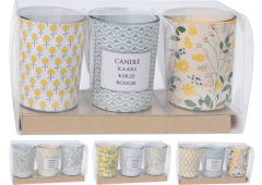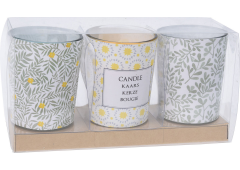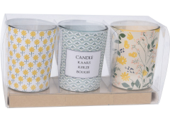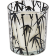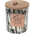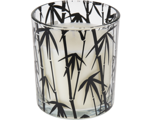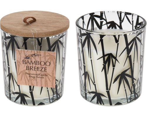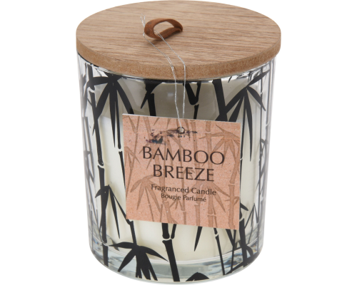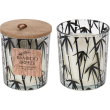 Kaars in glazen pot met palm print en houten deksel 11x9cm