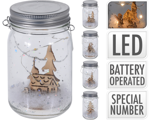 Verlichting 5LED Kersttafereel pot 13cm assorti