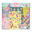 Unicorn XL super stickerset 36 x 38 cm. Bevat meer dan 300 stickers in verschillende vormen en formaten : 7 stickervellen in verschillende materialen en kleurrijke dessins en 1 zakje met circa 100 laser stickers incl. 2 grote vellen glitterstickers en 2 v