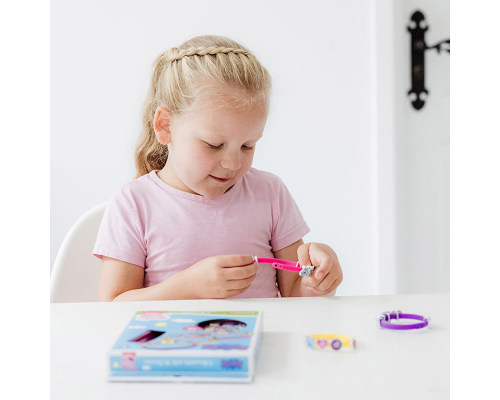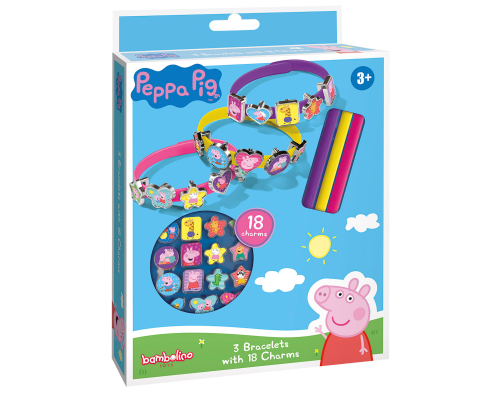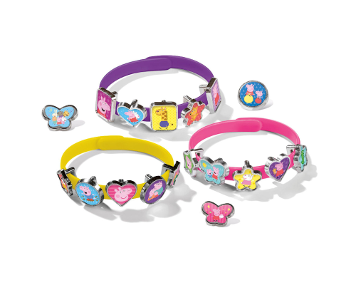 Maak 3 kunstof Peppa Pig armbandjes met 18 verwisselbare bedels_x00D_