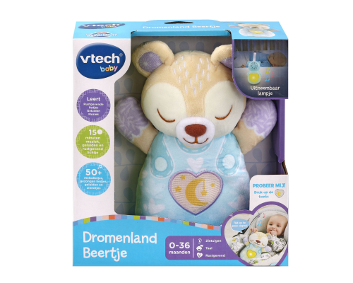 Een zachte knuffel en lieve woordjes voor het slapengaan. Met het Dromenland Beertje komt elke baby heerlijk tot rust. Druk op de harttoets om lieve zinnetjes, rustgevende melodietjes, gezongen liedjes en natuurgeluiden te horen. Het uitneembare nachtlamp