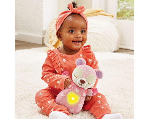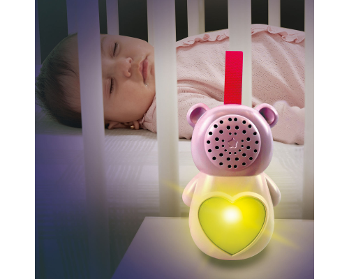 Een zachte knuffel en lieve woordjes voor het slapengaan. Met het Dromenland Beertje komt elke baby heerlijk tot rust. Druk op de harttoets om lieve zinnetjes, rustgevende melodietjes, gezongen liedjes en natuurgeluiden te horen. Het uitneembare lampje me