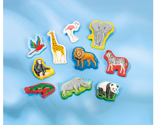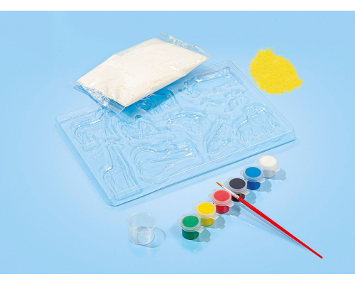 wildlife gips en verfset: 10 wilde dieren gipsen en beschilderen incl. 6 kleuren verf, 300 gram gips en maatbekertje en geel zand voor het speeldecor _x00D_