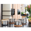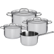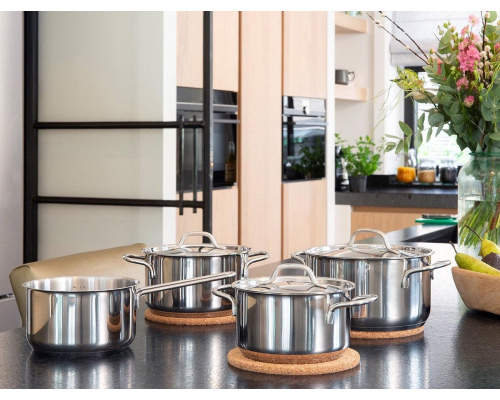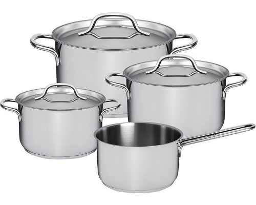 Deze Sola Mirage pannenset is een zeer complete pannenset waarmee je je kookkunsten perfect kunt ontwikkelen. Met 3 kookpannen en steelpan kook je de heerlijkste groenten en andere gerechten snel gaar. De pannen zijn gemaakt van hoogglans chroom nikkel en