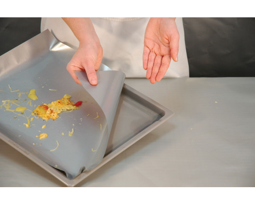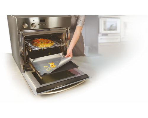 Herbruikbaar / Geen ingebakken spatten en bakresten meer / Eenvoudig op maat te knippen/ Hitte bestendig tot 260°C/ Eenvoudig te reinigen