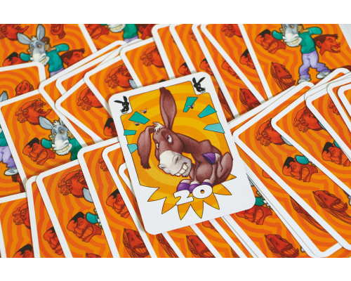 Leg zo snel mogelijk je kaarten af. De anderen krijgen strafpunten voor hun overgebleven kaarten. Pas op voor de ezel. Gezellig en onderhoudend familiekaartspel.