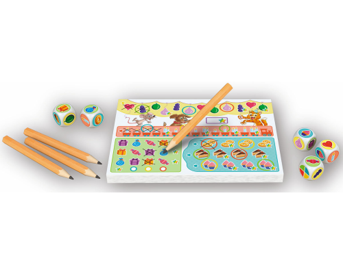 Speel nu Clever met de kleintjes! Rol met de dobbelstenen, kies alles van dezelfde kleur en vul de uitkomst in op je scorevel. Je tegenspelers kunnen kiezen uit de dobbelstenen die jij laat liggen. Clever Junior is dankzij het feestelijke thema en de vers