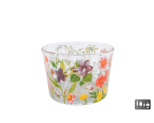 Theelichthouder Flowers glas maxi 8,5x8,5x6cm