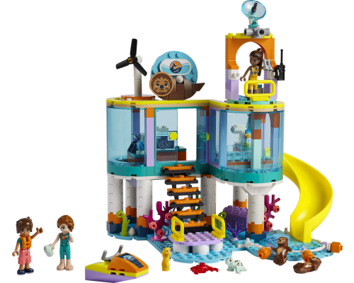 Kinderen kunnen doen alsof ze voor otters en andere dieren zorgen met dit LEGO Friends Reddingscentrum op zee inclusief 3 minipoppetjes en accessoires om verhalen te vertellen.