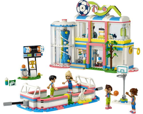 Kinderen bedenken hun eigen verhalen in het sportcentrum met deze fantasierijke speelgoedset met voetbal-, basketbal-, tennis- en klimaccessoires.