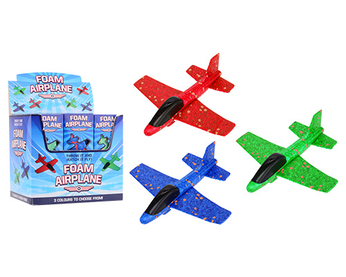 Foam vliegtuig in display 17cm - 3 assorti