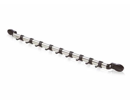 Stijlvol, strak en elegant – dat zijn de kenmerken van de LEIFHEIT keukenhulpjes: fraai design in combinatie met roestvrij staal en zwart kunststof. Bijzonder mooi tot hun recht komen deze fraaie keukenhulpjes aan dit ophangrekje. 11 verschuifbare haken v