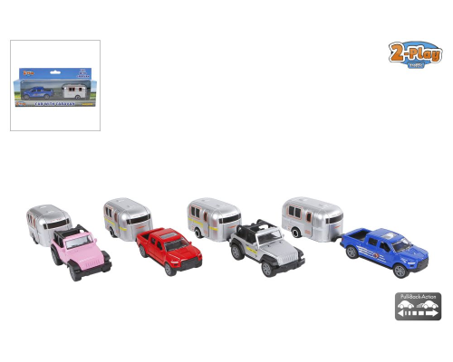 2-Play auto met caravan die cast pull back ass 16,5cm