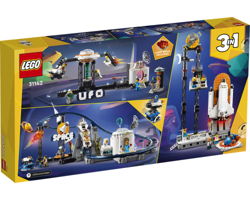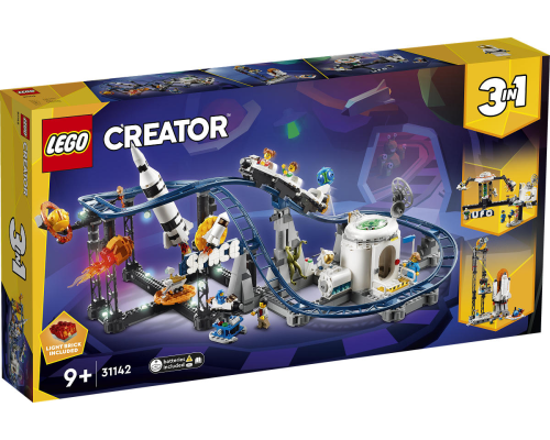 Kinderen kunnen genieten van spannende ritten in de LEGO Creator 3in1 Ruimteachtbaan en deze vervolgens ombouwen tot een vrijevaltoren of draaimolen.